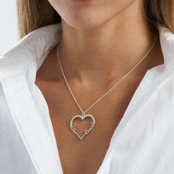 Konturowe Serce Personalizowany Naszyjnik z Imieniem